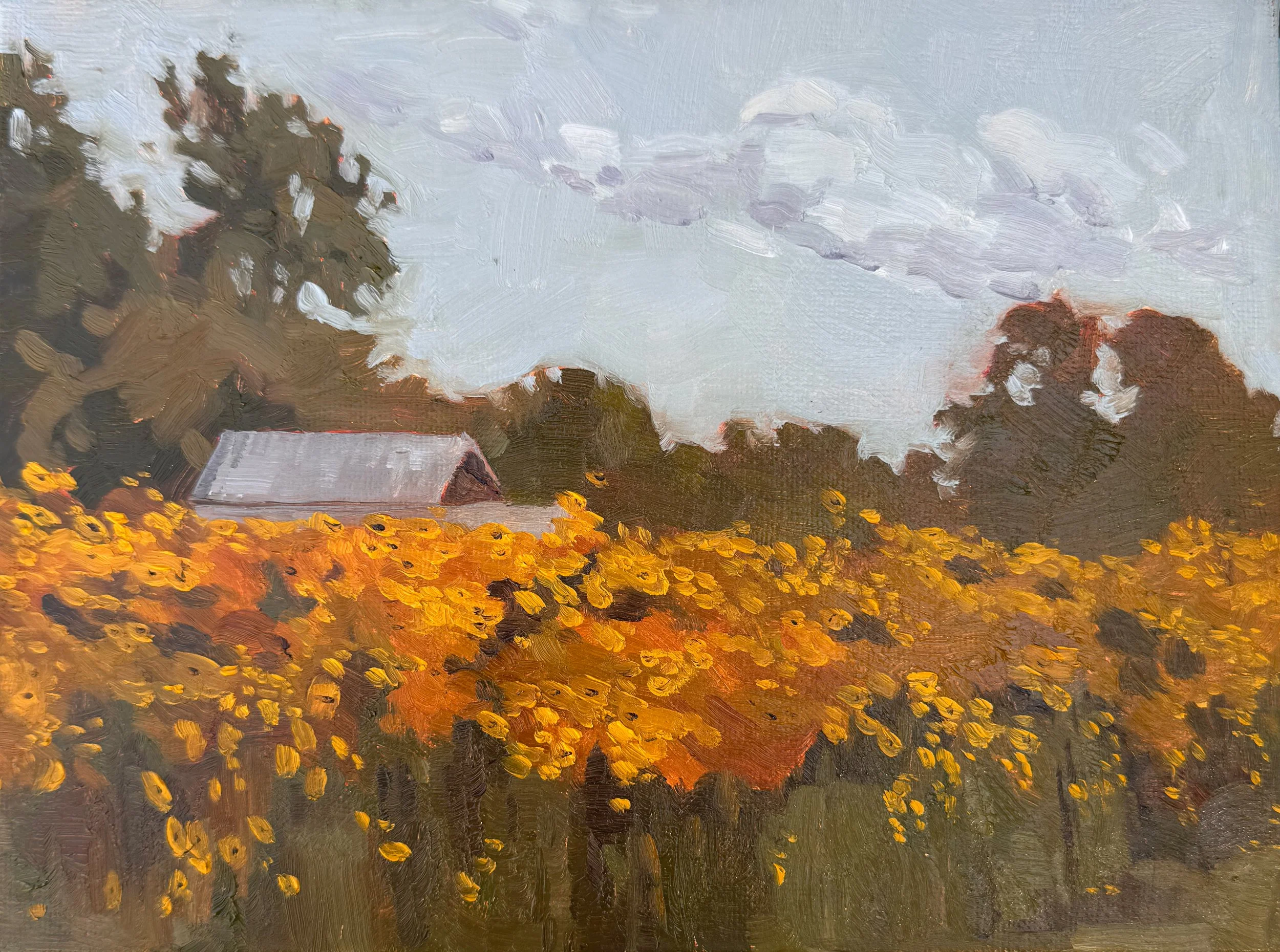 When I arrived at Bluestem Conservation Cemetery on a crisp fall morning for the Orange County Arts Commission's "Paint it Orange" Plein Air Paint Out Event, I wasn't sure what I'd find. What I discovered was nothing short of breathtaking—an entire field ablaze with golden narrowleaf sunflowers, native wildflowers that seemed to be cascading across the landscape like a warm, undulating wave. I wasn't alone in noticing their beauty; everywhere I looked, artists were setting up easels and preparing their palettes, all drawn to the same mesmerizing scene.